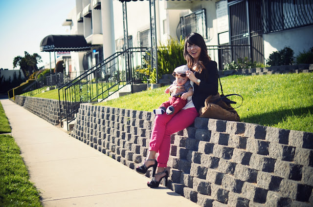 Cute mama! I love the color of those denim on you! And the bebe is looking stylish too :) xx